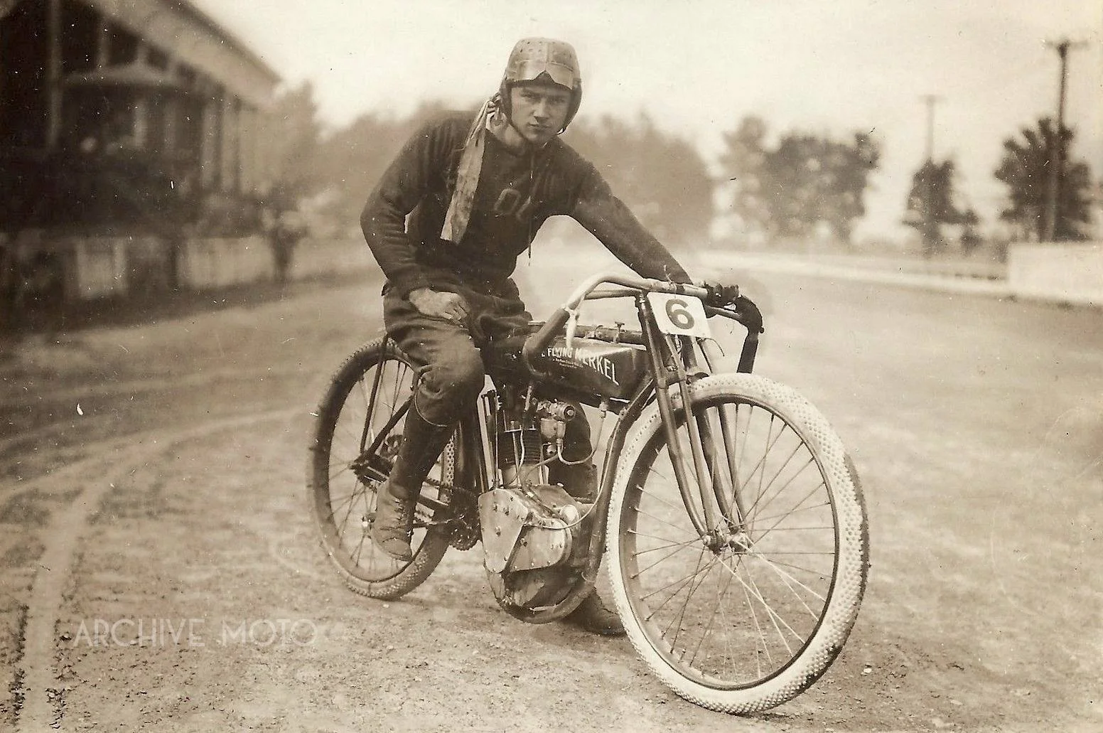 Not only was he a pioneer of the dirt track and the motordrome, but he was also one of the earliest to thrill audiences inside attractions like the wall of death. He was a staple member of the Yellow Jackets, the competitive factory team of Flying Merkel in the early teens despite his career being interrupted at its peak by WWI. In yet another example of his continuous exceptionalism Pineau enlisted for service in the Royal Flying Corps when the war broke out and trained to be a pilot. With less than 100 flying hours under his belt he shipped out to France where, in less than a month of active combat he distinguished himself as one of the top pioneer fighter pilots in the world shooting down 6 enemy aircrafts. After becoming one of an extremely small group of American Ace’s Pineau was himself shot out of the sky only to survive and spend the remainder of the first world war in German POW camp.